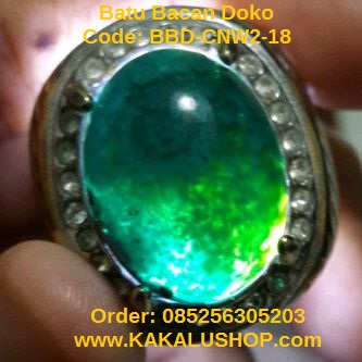Cincin batu bacan doko kristal warna hijau cincau. Batu bacan doko asli doko bacan maluku utara. Warna batu bacan doko kristal ini adalah hijau cincau, warna yang unik dan ekslusif. Anda berminat beli batu bacan doko warna cincau ini? Silahkan hubungi kami di 085256305203.